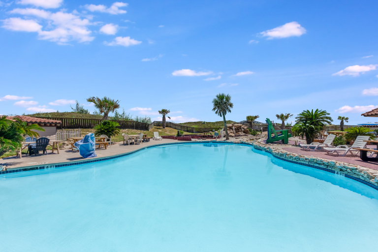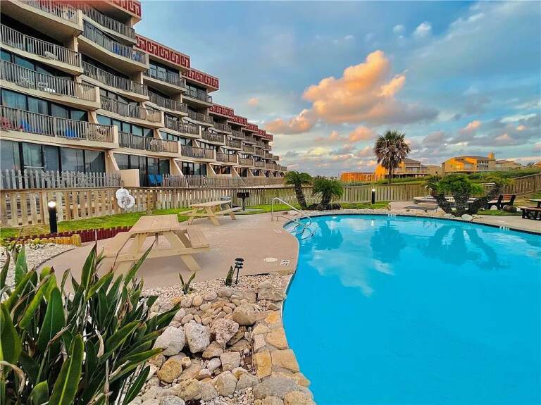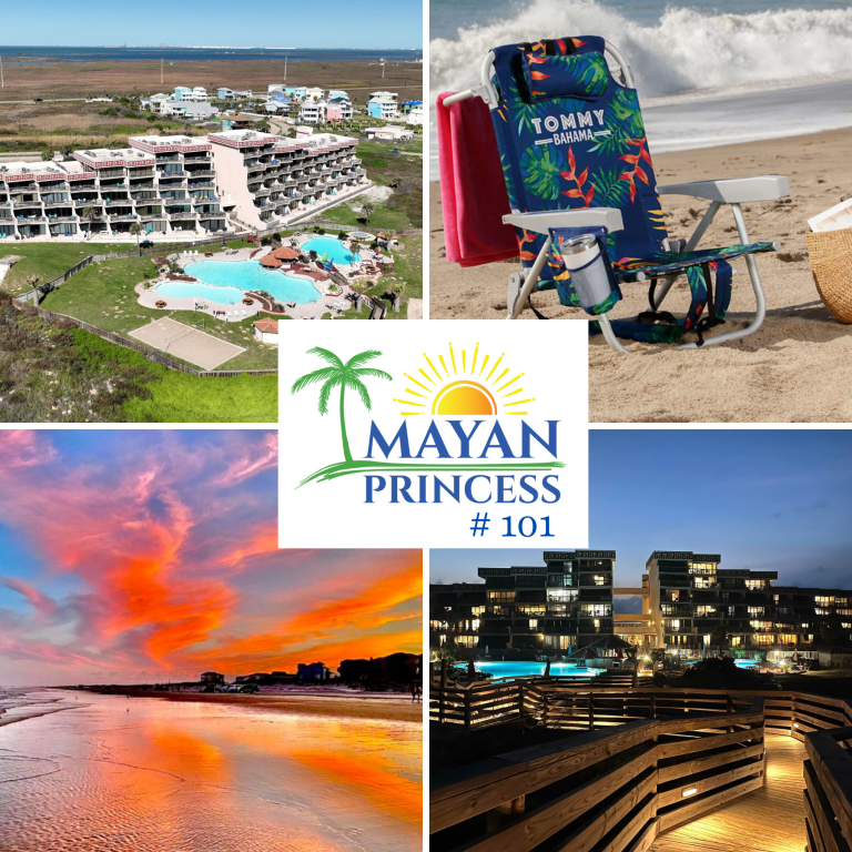 #101 is a 2 bed / 2 bath 1160 sq.ft. ground floor end unit at the Mayan Princess condos just a few miles South of Port Aransas. King primary bedroom plus queen room, we also have a twin rollaway.